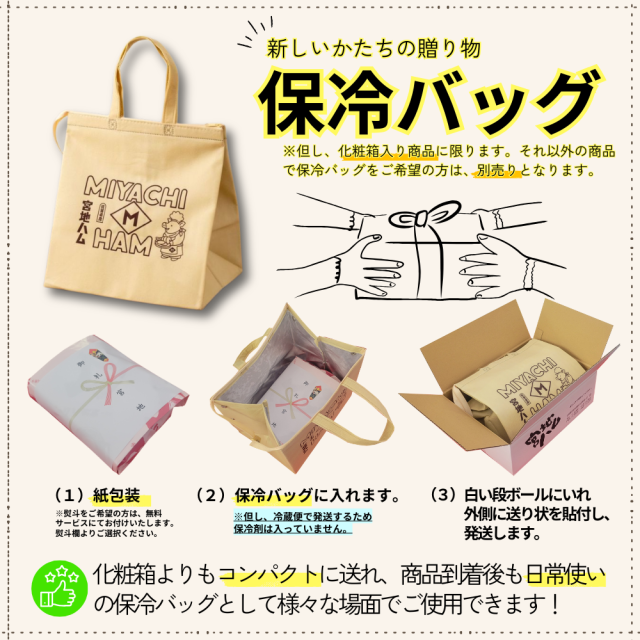宮地ハムオリジナル包装紙でラッピングは無料サービスで承ります。
